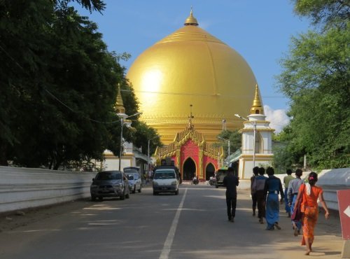On my way out to Halin I had a quick look at Sagaing - capital of the eponymous kingdom of the 14th century and once again from 1760-1765 during the Konbaung Dynasty. The view from the bridge connecting Sagaing with Amarapura & Mandalay already is memorable: a hill dotted with innumerable golden stupas. A bit further along the road lie the more ancient temples and pagodas. These include the enormous