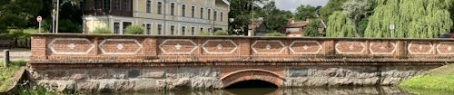 The signs post to places all over town, but only a part of it lies in the core zone: the area on a hill near the waterfall plus the streets with historic houses leading towards the Old Town Hall. As I am writing this only half a day after my visit, I find it hard to name any sight that stayed with me. There are a few timber-framed buildings, there's the much-photographed view from Pasta Street #5 towards the oldest wooden building in town next to a canal and there is a large Lutheran cathedral. My favourite building was the former District Court (photo 1).