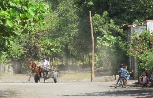 I reached León Viejo by public transport from León. That's a fun thing to do if you have time. You can get there by local buses, with a change in the town of La Paz Centro. The bus driver will know where "Las Ruinas" are, you have to walk 200m from the final stop in the town of Puerto Momotombo. The site is also signposted all over town, it's impossible to miss. I had to wait almost an hour for the return bus, and spent that sitting in the main street watching rural Nicaraguan life go by. Horsecarts are still a common mode of transport here. I also noticed a few wandering salesmen, going from door to door selling plastic stuff or fruits.