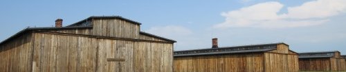 | Original wooden barracks in Birkenau |