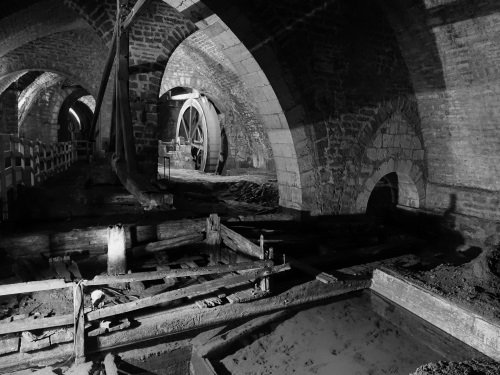 The main distinguishing feature of Salins has been described by ICOMOS as “extraction techniques, notably the existing underground facilities, which testify to the pumping system and the production of open-pan salt”. There’s always some excitement about an underground tour, though I must say that there aren't many original features left. The saltworks here were based on preserved layers of salt beneath the ground. Via an extraction process (partly done by horses and later using water wheels), brine would be pumped into pans and concentrated by the heat of the fire burning underneath. As crystals of salt formed these would be raked out and more brine added. The huge drying racks and fans can still be seen.