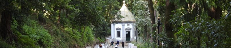 At half past eight in the morning I put my rental car in the free parking lot at the bottom of the hill on which the sanctuary is located. From there you can walk up, almost 600 steps have to be climbed on the long wide staircase. I didn't see any other tourists yet, but there were lots of local joggers around for whom this climb apparently fits perfectly into their daily or weekly sports routine. This lower part runs through a forest and is therefore pleasantly shaded. A chapel can be found in every hairpin bend, containing somewhat primitive portrayals of scenes from the last days of the life of Christ.