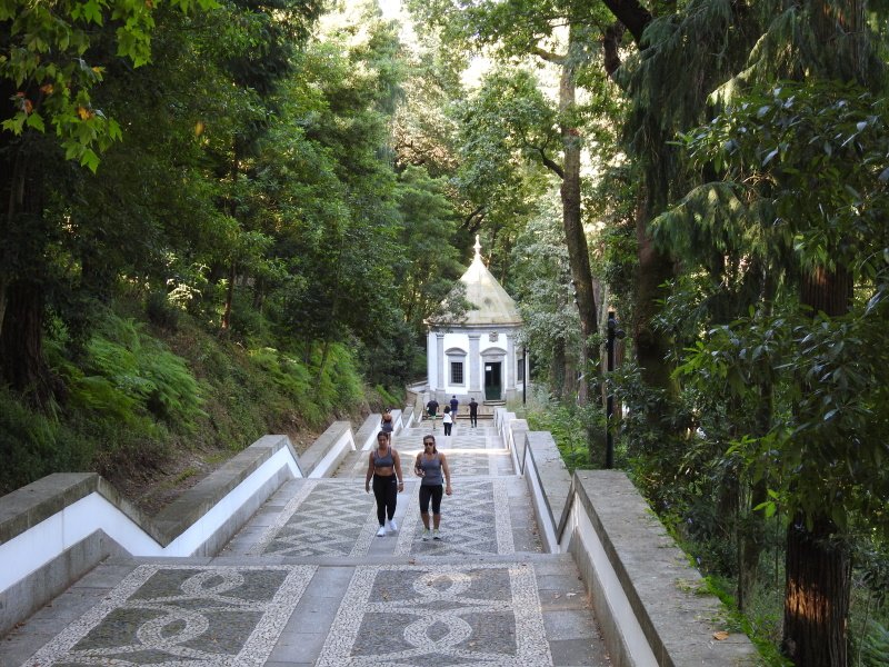 is a Catholic shrine located just outside the pleasant Northern Portuguese city of Braga. It is located on top of a hill, the route to it is shaped by a zigzagging staircase that symbolizes the way taken by Christ on the day of his crucifixion. The entire complex is built of granite and is decorated with fountains, statues and other ornaments. The shrine is visible in the far distance from Braga's central square, but it lies some 6 km away.