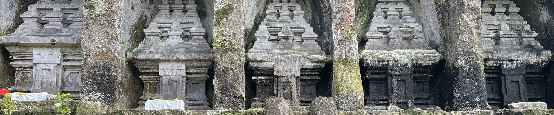 Candi Tebing Gunung Kawi: This lies just around the corner. It does require almost 400 steps to get down to the rock carvings, so you will surely spend more time here. The setting with coconut palm trees and rice terraces is lovely and the rock carvings are unique to this area. It's great to just sit down on a stone wall and take it all in.