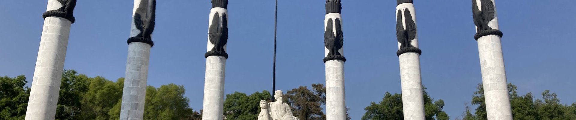 In the park, we stopped at the Botanical Garden. You can see from the plants here that the climate in Mexico City is very special: it is a city in the tropics, but also at an altitude of 2,400 meters. The vegetation is therefore a mix of tropical plants and plants brought by Europeans. A natural monument of interest deeper into the park is this notable tree: the Ahuehuete "El Sargento". It is a Mexican cypress tree planted by the pre-Columbian ruler Nezahualcoyotl around 1460. It is now reduced to its dead trunk.