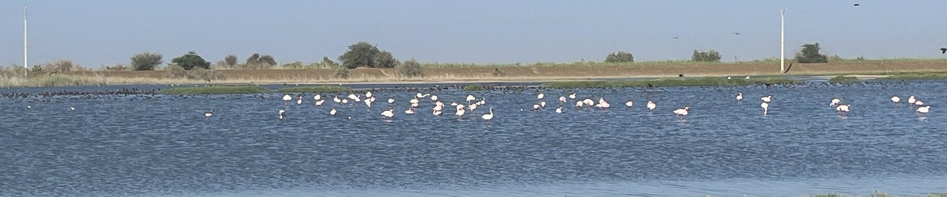 Banc d'Arguin, which I visited earlier on this trip, and Djoudj Bird Sanctuary are crucial for conserving migratory waterbirds in West Africa. Banc d'Arguin is particularly important as a wintering site, while Djoudj is known for its breeding colonies. Another difference with Banc d’Arguin is that it isn’t coastal but an inland wetland centered around a lake. It is more focused on flamingoes and pelicans instead of waders.