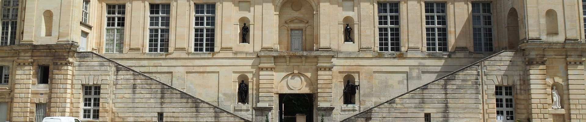 We couldn't find the castle parking lot, so we parked along the park and entered the courtyard of the white horse alone, like Tintin and Captain Haddock in front of the facade of Moulinsart Castle. We were surprised to see that the entrance to the castle overlooks the town of Fontainebleau, whereas it was originally a royal hunting lodge, therefore logically, in the middle of the forest? The entire park is surrounded by urban areas except on the side of the "Le Romulus" fountain, which is a bit of a shame. In the White Horse Courtyard, the side wings and the horseshoe staircase are quite stylish, but we abandoned them to go to the Fountain Courtyard where, as James Bowyer says, it is possible to quench your thirst on the terrace of a pleasant brasserie and drink a royal coffee. Unfortunately, the Golden Gate was hidden by scaffolding and tarpaulins. Access to the park and gardens is via a carriage entrance under the wing of the Belle Cheminée, and from there to the Oval Courtyard and the Courtyard of the Offices, but as Hubert says, the Oval Courtyard was closed. It can still be seen, however, through the bars of the metal gate. (Again, the same photo as before)
