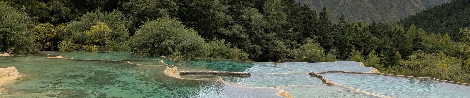 Our initial glimpses of Huanglong were, truth be told, a touch anticlimactic. We'd ascended via the cable car and found ourselves on the first viewing platform. Compared to the turquoise pools of Jiuzhaigou the day prior, it all looked rather small and decidedly brownish. The day's cloudy weather probably didn't help.