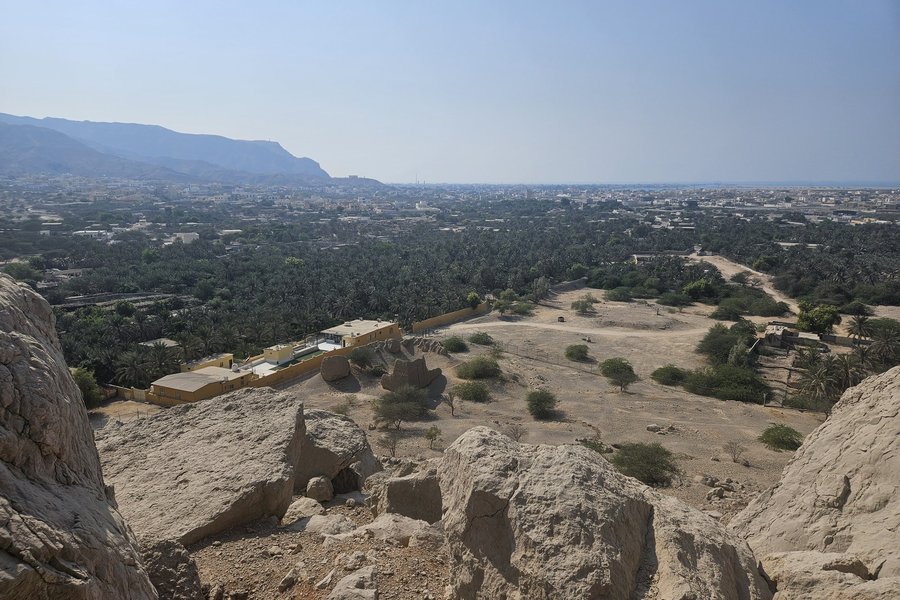 From the top you are able to spot some of the other elements. The palm gardens with the falaj are set around the fort hill, but seems to be in commercial use and walled off. The lagoon is part of the modern city of Dhaya and we did not bother to go there. And of course, Dhayah also mentions old graves. Like Hatta, Faya, Mleiha and Shimal. You get the gist. According to the UNESCO website, four of these graves are planned to be made accessible by creating an Archaeological Park, I didn’t find anything about its existence so far. UAE seems to push this site for the near future, so it might become more interesting. The current visitor experience is not impressive.