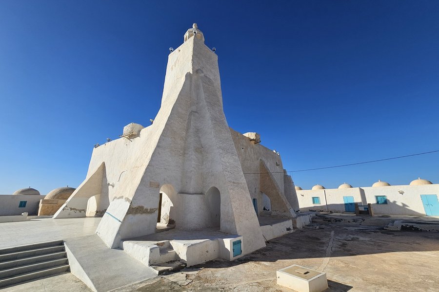 Active mosque. Just next to the road from Djerba Ajim to Guellala. Mosque closed, but you can peak in from the windows.
