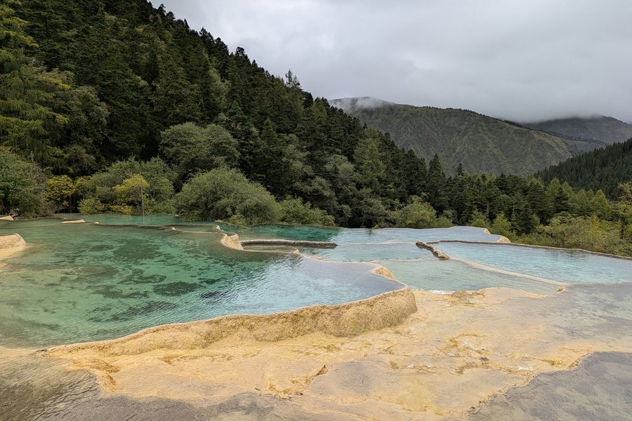 Huanglong is a real fairy tale landscape with autumn leaves, frozen waterfalls and ponds colored blue through yellow make Huanglong a surreal place. I visited in 2018 after a business trip in Beijing. I always flew in to Chengdu (great KLM fares). Huanglong is just 150 kilometers from Chengdu but through the mountains by road I would not recommend. Take a short flight to Jiuzhaigou airport and stay in a hotel there. From Jiuzhaigou it's a 1.5h drive to Huanglong. A day trip suffices. The entrance fee is huge. Avoid visiting during Chinese holidays as you will regret that. Keep in mind that during November at some point the cable car stops for the winter and opens again in spring.