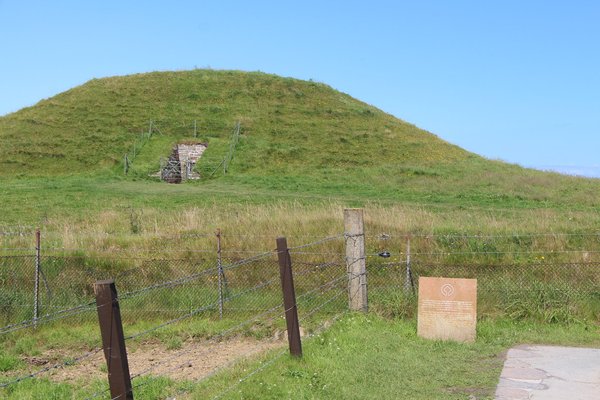 The tomb is awe-inspiring. The space is maybe 15'x15'x15'. It is pretty completely dark except for the light from the guide's torch (flashlight for us Americans). My friend and I were the only folks in the tomb with the guide, and it was all the better for it. Not only do you get a 5000-year old stone tomb that took a hundred thousand man hours to build, but you also get a collection of 11th century Viking graffiti, too. The tomb is in a grass mound a short way from the road; you must buy a ticket (I think it was 10 quid) at the converted farmhouse opposite.
