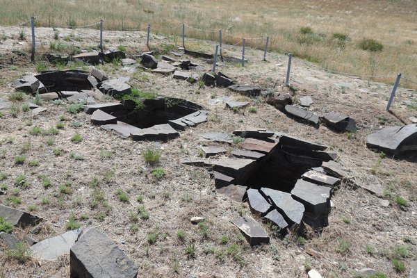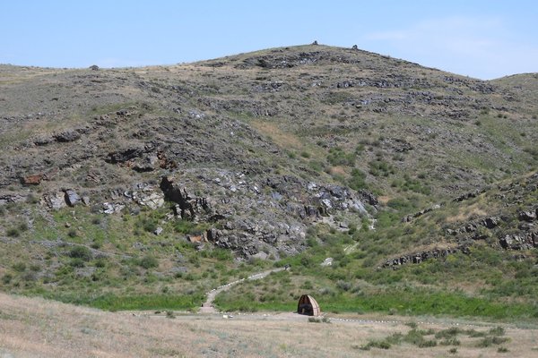 "A huge number of ancient burials are known on the site. ... the later types consist of mounds (kurgans) of stone and earth built above tombs. The latter seem to date from the Early Iron Age to the present day." (AB ev) -