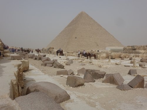 This is the site where the ancient Egyptians had perfected their art of building pyramids. Especially the great pyramids of Cheops and Chefren are perfect in shape, huge and entirely of stone. If you have come by car or the tour bus, you can drive from one pyramid to another on an asphalt road. There are also men with horse carriages and camels that would love to show you around. I just walked - you can take short-cuts through the sand and it is easy to do. Only at a given time I was covered in grains of sand, from my hair to my shoes.