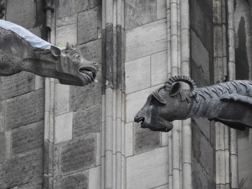 It is remarkable how close to the Cathedral modern structures were built. There's this parking garage, but there is also the ugly box of the Romano-Germanic Museum which houses a Roman mosaic. There is the Ludwig Museum - a bit more tasteful in style but also very close to the cathedral. The worst addition though must have been the railway station, which contributes to the pollution of the facades and the general scruffiness of the area.