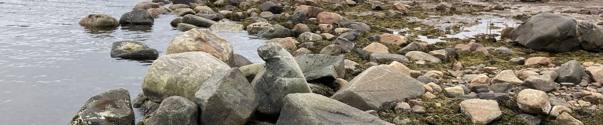 A few minutes' drive outside the town of Red Bay (but still included in the core zone) lies the Boney Shore Walking Trail, a trail focused on whalebones. It lies high enough to have beautiful views over the bay again: there is an inland harbor and a seaside part. Islands protect the entrance, and the remains of buildings and ships can still be seen, but people haven’t lived there for a long time. The whalebones were a bit difficult to find at first – they are not on the beach and not on the path, but just in between. They look like stones, but their shapes still betray them.
