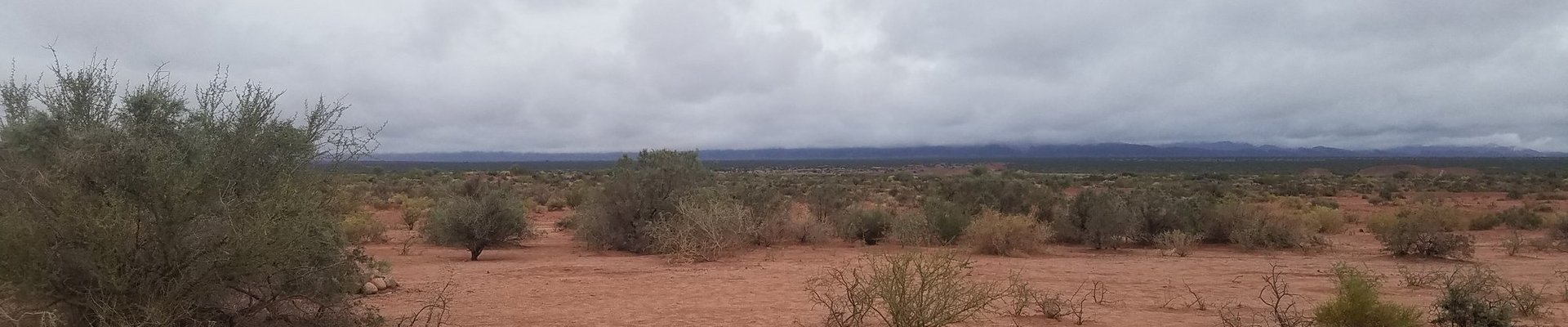 But it got ruined on the way, as it started to rain. Although the rain was just a light drizzle in Ischigualasto, the tour was delayed and ultimately cancelled. The excursion involved traveling in personal cars across some dry streams, which could become dangerous rivers when it rains. While waiting at the visitor's center, I visited the excellent Museo de Ciencias Naturales de Ischigualasto, which had fossils, bones, and replicas of the main dinosaurs found in the park. Outside, there was a rather banal viewpoint of the park's landscape.