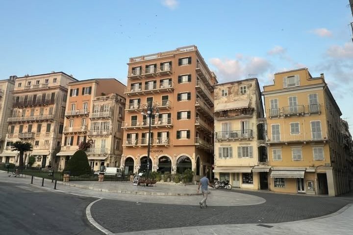 I arrived in Corfu by ferry from Sarandë in Albania, a short crossing across the glittering Ionian Sea. The ferry terminal stands some distance from the historic center, so I took an Uber to my hotel in the city. As we drove past the imposing New Fortress, its massive stone walls rising beside the lively old town crowded with cars and tourists, I immediately understood why Corfu is one of the most popular destinations in Greece, vibrant, historic, and full of summer energy.