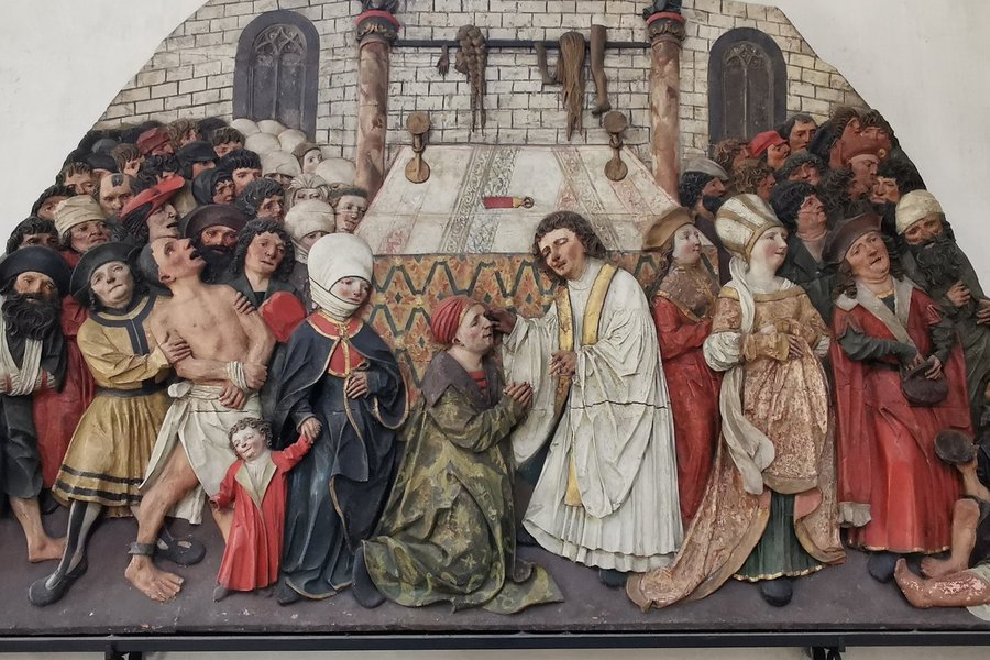 The church itself can be visited for free, the crypt costs 2,50 euro to be paid at the (big) Dom-shop. There are several paid options for guided tours and visiting the ‘treasure room’, but advanced reservation is required. The detailed website gives all information only in German (a bit too much information to translate it all here) and I don’t know if that means that tours are also only offered in German. Opening hours are daily except Mondays in the summer semester, but more limited in the winter season. For example, since the shop is closed in January and February, you can’t visit the crypt. So, depending of what you want to see, it may need some planning ahead.
