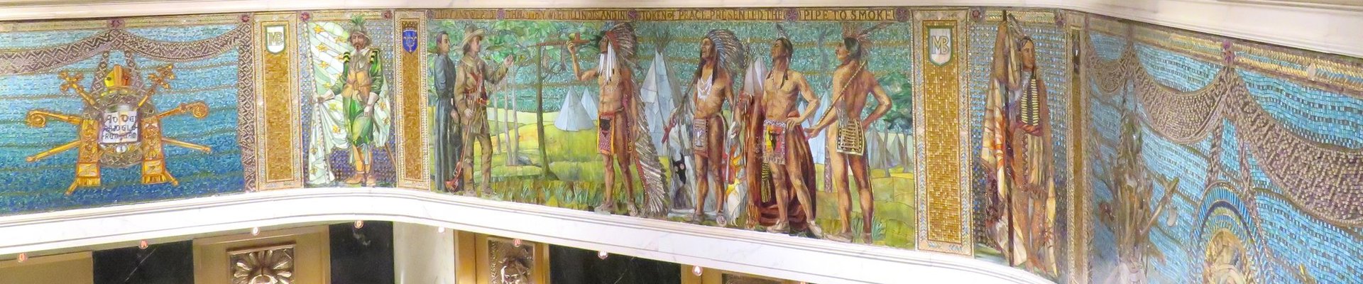 This is a must-see component of the Early Chicago Skyscrapers nomination. The front entrance is adorned with scenes of Chicago History. The History of Chicago and the Great Lakes region are even more richly adorned in the lobby, which is open to the public. The mosaics were created by Louis Comfort Tiffany (yes, that Tiffany). Visitors are rewarded after exiting the lobby going straight past the National Historic Landmark sign to an informative display about the Chicago School or Architecture. Interesting panels about the History of the Marquette Building and this period of construction is displayed, providing excellent context to the overall scope of the nomination.