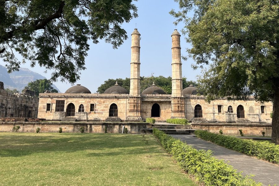 This largely unexcavated city, built in the 16th century, was the short-lived capital of Gujarat. Spread across 12 locations at the bottom of and against a hill, fortifications, water installations, and different standing structures, remain. Among them is the Great Mosque, a model for later mosque architecture in India. The Pavagadh Hill itself is still a place of pilgrimage for Hindus who visit the earlier temple of Kalika Mata at its top.