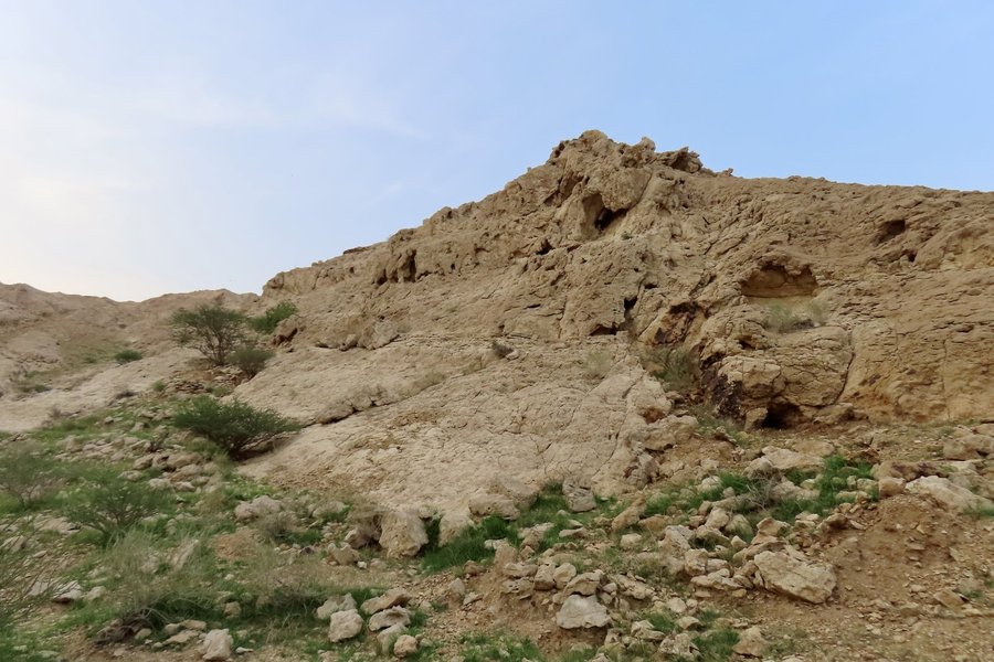 I have little experience in visiting prehistory landscapes such as this and therefore I was grateful for our tour guide. We hiked starting from the remnants of a spring that was used by humans over many thousands of years. From here we hiked the gently incline toward the caves. Because of recent rains before our visit, much of of the desert landscape was partially green with new plant growth. The caves were in fact human occupation sites and excavations have been carried out to confirm how these caves were used throughout the millennia of the Paleolithic era. During this short hike (about 30-45 minutes) with stops, you will see 3 caves and some pleasant views, one of the caves is possible to enter, though it's a tight fit.