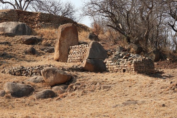 "The largest concentration of stone walling and terracing at Khami surrounds a prominent hill overlooking the Kame River. This was almost certainly the residence of the Mambo (king) although several ceremonial objects found during excavations suggest that it was also a centre of ritual in the Iron Age town."(see link) -