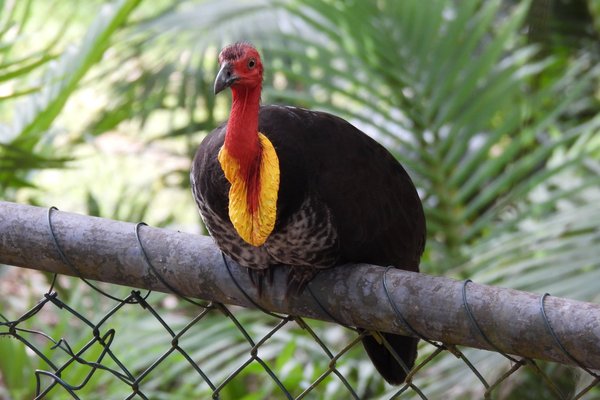After arriving at the Skyrail Rainforest Cableway Terminal in Smithfield, the whole cable car ride (7.5km) over the rainforest canopy took around 40 minutes (not including time spent at each station). There are 2 worthwhile stops: Red Peak Station and Barron Falls Station. Red Peak Station is the highest point at 545 metres above sea level and there is a 200 metre boardwalk where you can easily see primitive fern-like cycads, elkhorns, staghorns, bird's nest ferns, Kauri pines, Alexandra palms, Caribbean pine trees, fan palm trees, a variegated fig and a banyan tree, apart from several metallic starlings.