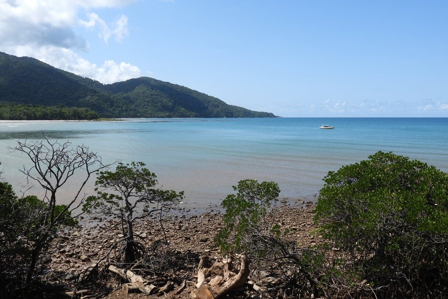b. Cape Tribulation Beach, where the rainforest meets the reef.