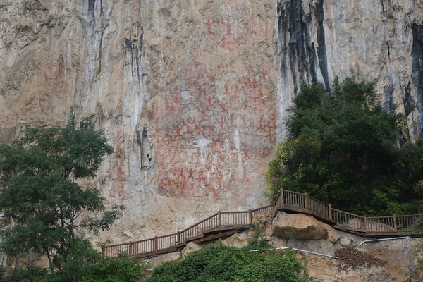 The Zuojiang Huashan Rock Art Cultural Landscape comprises thousands of pictographs, painted on steep cliff faces along the river in a karst landscape.