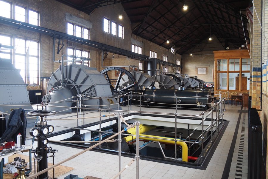 Its purpose is to lower the water level of the Friesland. It is capable of pumping 4 million liters of water per minute at full capacity, or +/- 6,600 kW. The Friesland watershed covers 3,400 to 4,000 km2. This station is the largest steam-powered pumping station in the world! Initially, the fuel was coal; the boilers were converted to run on oil in 1967 PC.