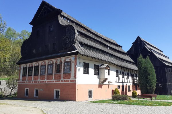 This paper mill combines fragments of the building from the mid-16th century extended in 1605 with the remaining part of the ground floor as well as the three storey attic. Paper was manufactured in the basement and dried in the attic. The ground floor served administrative and residential purposes. Since the paper mill belonged to noblemen, in the early 17th century it was given the form of a traditional manor house. In the 1740s, the western facade was adorned with a characteristic volute gable and on the eastern side a vast wooden drying room was added.